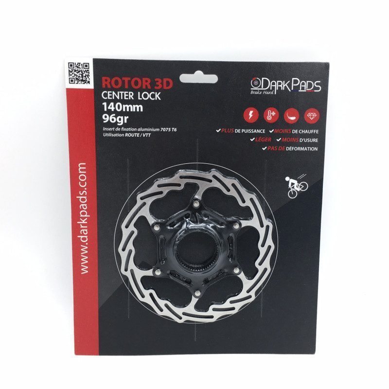 Caractéristiques techniques - Fixation Centerlock - Excellente évacuation de l'humidité - Réduction importante de l'échauffement = plus de performance au freinage - Réduction du poids - Vagues 3D pour réduire l'effet de ''fading'' - Poids réduit 113 grammes en 160mm - Moins de perturbation en cas de vent latéral - Disponible en 140,160 et 180mm - écrou de serrage fourni - Marque DarkPads.