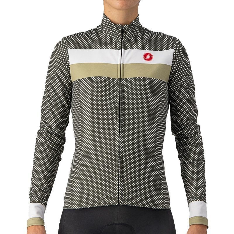 Caractéristiques techniques : - Coloris : kaki - Tailles : XS au XL - Poids : 279 grammes (taille S) - Plage d'utilisation : 13-18 degrés - Tissu Warmer en polyester avec couche intérieure en polaire brossée - Fermeture à glissière YKK Vislon avec languette de protection - 3 poches à l'arrière - Passepoil réfléchissantGuide des tailles Castelli