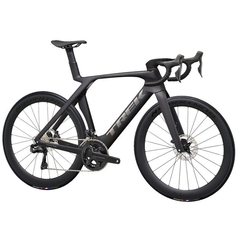 Caractéristiques techniques : - Coloris : Deep Smoke - Tailles : 47, 50, 52, 54, 56, 58, 60, 62 - Cadre : Carbon OCLV Série 800, forme de tube KVF (Kammtail Virtual Foil), tube de selle IsoFlow, acheminement invisible des câbles, maintien de chaîne Aero 3S, boîtier de pédalier T47, freins à disque à fixation Flat-Mount, axe traversant 142x12 mm - Fourche : Madone KVF tout en carbone, pivot conique carbone, acheminement des câbles masqué, freins à disque à fixation Flat-Mount, pattes en carbone, axe traversant de 12x100 mm - Roue avant : Bontrager Aeolus Pro 51, carbone OCLV, Tubeless Ready, axe traversant 100x12 mm - Roue arrière : Bontrager Aeolus Pro 51, Tubeless Ready, corps de roue libre Shimano 11/12, axe traversant 142x12 mm . - Blocage roue arrière : Axe traversant Bontrager Switch, levier amovible - Jante : Bontrager Aeolus Pro 51, OCLV Carbon, Tubeless Ready, 100x12mm thru axle - Pneus : Bontrager R3 Hard-Case Lite, tringle en aramide, 120 tpi, 700x25C - Dérailleur avant : Shimano Ultegra R8000, à braser, basculement vers le bas - Dérailleur arrière : Shimano Ultegra R8150 Di2 - Pédalier : Shimano Ultegra R8100, 52/36, 165 mm (taille 47), Shimano Ultegra R8100, 52/36, 170 mm (50, 52), Shimano Ultegra R8100, 52/36, 172,5 mm (54, 56, 58), Shimano Ultegra R8100, 52/36, 175 mm (60, 62) - Boîtier de pédalier : Praxis, T47 fileté, roulement interne - Cassette : Shimano Ultegra R8100, 11-30, 12 vitesses - Chaîne : Shimano Ultegra/XT M8100, 12 vitesses - Selle : Bontrager Aeolus P2 Elite, largeur de 155 mm (47, 50, 52), Bontrager Aeolus Elite, rails en austénite, largeur de 145 mm (54, 56, 58, 60, 62) - Tige de selle : Tête de mât de selle interne carbone aéro Madone, fixation intégrée pour éclairage, déport de 0 mm, court (47, 50, 52, 54), Tête de mât de selle interne carbone aéro Madone, fixation intégrée pour éclairage, déport de 0 mm, long (56, 58, 60, 62) - Cintre/Potence intégré : Cintre/potence Madone intégrée, OCLV carbone, largeur de 380 mm, longueur de 80 mm de potence (47), Cintre/potence Madone intégrée, OCLV carbone, largeur de 400 mm, longueur de 90 mm de potence (50, 52), Cintre/potence Madone intégrée, OCLV carbone, largeur de 420 mm, longueur de 90 mm de potence (54), Cintre/potence Madone intégrée, OCLV carbone, largeur de 420 mm, longueur de 100 mm de potence (56, 58), Cintre/potence Madone intégrée, OCLV carbone, largeur de 440 mm, longueur de 110 mm de potence (60, 62) - Ruban de guidon : Ruban de guidon Bontrager Supertack Perf - Disque de frein : Shimano MT800, centerlock, 160 mm - Poids : 7,48 kg (56) / Poids maximum : 125 kg