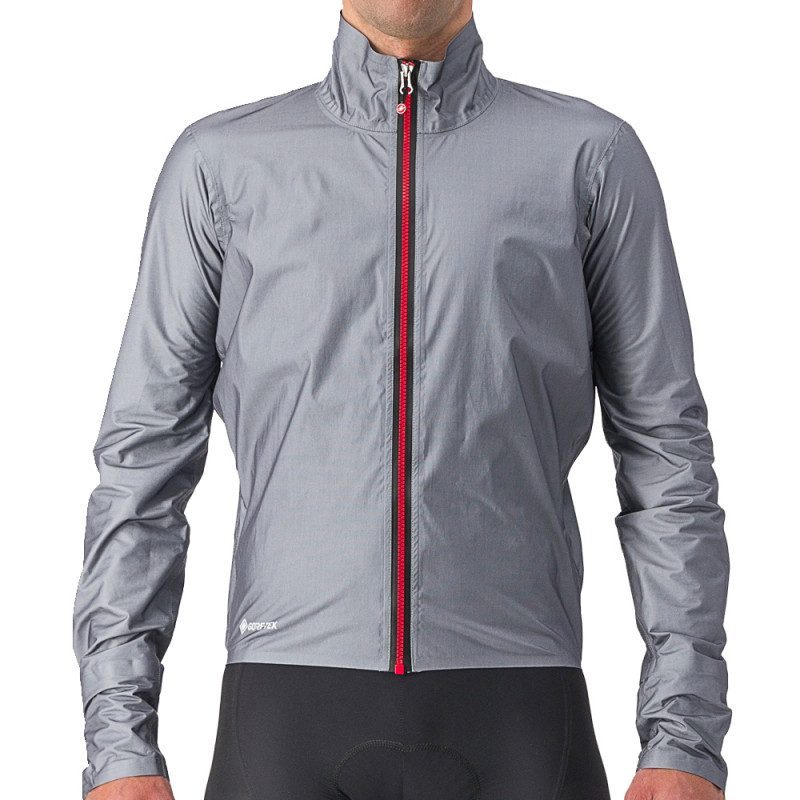 Caractéristiques techniques : - Coloris : Grey - Tailles : S, M, L, XL - Poids : 205 grammes - Plage de températures : 4-18 degrés - Coupe : Performance - Tissu imperméable Gore-Tex - Bande réfléchissante à l'arrière des deux manches - Fermeture à glissière étanche YKK Vislon - Soufflet de poignet interneGuide des tailles Castelli