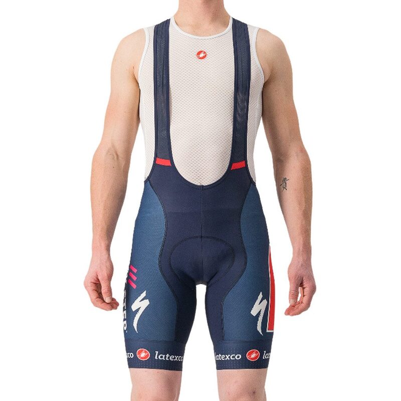 Caractéristiques techniques : - Coloris : Soudal - Quick Step 2023 - Tailles : XS, S, M, L, XL, XXL, 3XL - Poids : 173 grammes (taille L) - Plage de températures : 15-35 degrés - Insert : Kiss Air2 - Tissu Affinity Pro Lycra à l'intérieur de la jambe - Tissu texturé Vortex BLC sur les jambes - Pince de jambe Giro4 - Bretelles en maille - Coutures plates - Détails réfléchissants au dosGuide des tailles Castelli