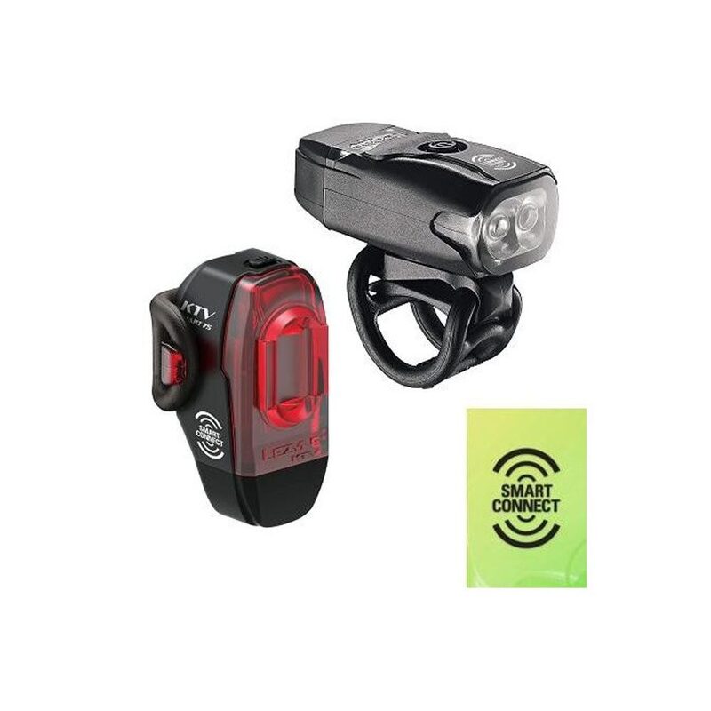 CARACTéRISTIQUES TECHNIQUES : éclairage avant : - Puissance : 15 à 200 Lumens - Autonomie : 2h à 20h - 6 modes d'éclairage - Technologie Smart Connect (contrôlable depuis votre Smartphone ou GPS compatible) - Recharge USB - Temps de recharge : 2h15 - Fixation Clip-On par sangle ou clip - Poids : 47.5g - Marque : Lezyne éclairage arrière : - Puissance : 3 à 75 Lumens - Lentille optique grand angle (270°) - Autonomie : 4h à 19h30 - 5 modes d'éclairage - Technologie Smart Connect (contrôlable depuis votre Smartphone ou GPS compatible) - Recharge USB - Temps de recharge : 2h15 - Sangle de fixation pour tige de selle - Poids : 45g - Marque : Lezyne