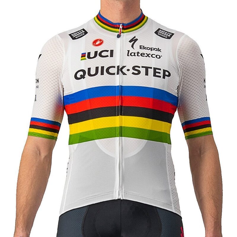Caractéristiques techniques : - Taille : XS au 3XL - Coloris : World Champion Quick-Step Alpha Vinyl Team - Poids : 159g (M) - Composants : tissu en micro-filet Strada sur le devant et dans le dos, tissu Tailwind sur les épaules - Fermeture éclair intégrale YKK Vislon Guide des tailles Castelli