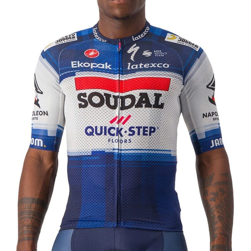 Caractéristiques techniques : - Coloris : Soudal - Quick Step 2023 - Tailles : XS, S, M, L, XL, XXL, 3XL - Poids : 106 grammes (taille M) - Plage de températures : 22-40 degrés - Tissu Flusso 3D sur le devant et les manches - Tissu StradaPro 3D sur le dos - Manches extensibles jusqu'aux coudes avec bords bruts - Fermeture à glissière YKK Vislon - Queue tombanteGuide des tailles Castelli