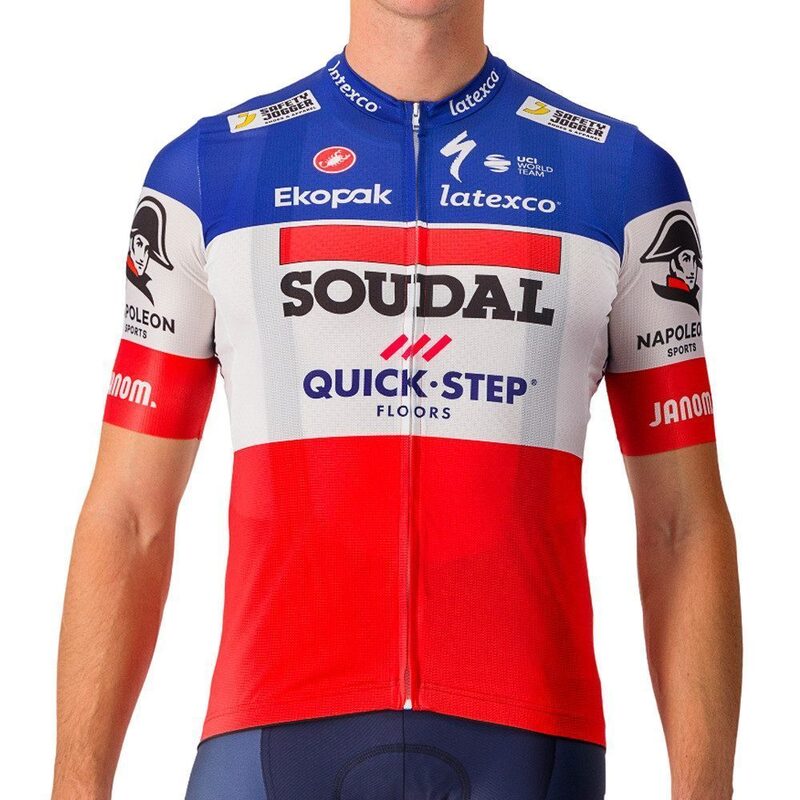 Caractéristiques techniques : - Coloris : Soudal - Quick Step French Champion 2023 - Tailles : XS, S, M, L, XL, XXL, 3XL - Poids : 120 grammes (taille M) - Plage de températures : 15-38 degrés - Tissu Strada en micro-maille à l'avant et à l'arrière - Tissu extensible alvéolé Tailwind sur les épaules, les panneaux latéraux et les poches - Zip YKK Vislon - Elastique en silicone à la tailleGuide des tailles Castelli
