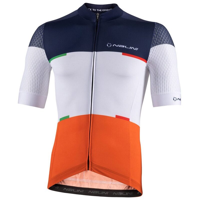 Caractéristiques techniques : - Coloris : Bleu/Blanc/Orange, Bleu/Blanc/Kaki - Tailles : S au XXL - Tissu léger et hydrophile - Manches en maille avec élastique à l'ourlet avec passepoil - Pince élastique en silicone à l'arrière - Ourlets thermosoudés sans couture sur le devant et côtés - Fermeture à glissière YKK dissimulée - 3 poches fonctionnelles à l'arrière avec passepoil réfléchissantGuide des tailles Nalini