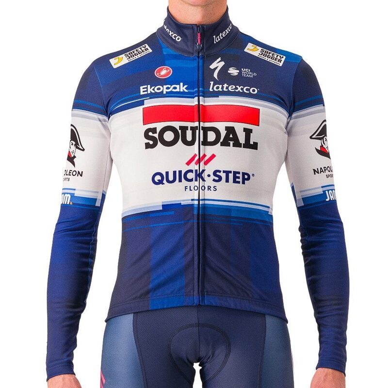 Caractéristiques techniques : - Coloris : Soudal - Quick Step 2023 - Tailles : XS, S, M, L, XL, XXL, 3XL - Poids : 245 grammes (taille M) - Plage de températures : 12-18 degrés - Tissu polaire brossé Warmer X-Stretch d'épaisseur moyenne - Panneaux latéraux extensibles - Fermeture à glissière YKK Vislon couverte - élastique de préhension en silicone à la taille - 3 poches tombantes à l'arrièreGuide des tailles Castelli