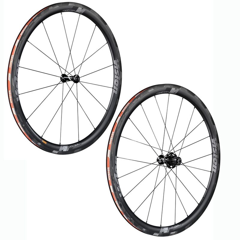 Caractéristiques techniques - Jante à pneus Full carbone, profil de 40mm, technologie Tubeless Ready - Poids : 1450 grammes la paire - Nouveaux moyeux extra light P.R.A pour rayons droits - Montage artisanal à la main - Serrages de roues (QR-93), prolongateur de valve , patins de freins et housse de roues - Corps de cassette aluminium pour Shimano 10-11-12v Sam 10-11v - Rayons : 16 roue Avt; 21 roue AR, 14 croisés x 2 côté droit et 7 coté gauche (2:1 ratio) - Largeur de la jante : 26mm , largeur interne 19mm - hauteur de jante 40mm - Marque : VisionVendues avec blocages rapides QR-93, patins de freins, housse de transport et valves.Si vous désirez un changement de corps de roue libre, nous vous invitons à prendre contact avec notre service client au 04.74.694.694.