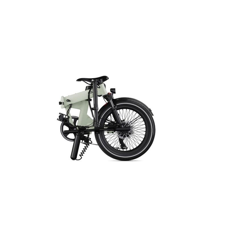Caractéristiques techniques Poids : 23kgCharge maximale (cycliste compris) : 130kgCadre aluminiumFourche suspendue hydrauliqueColoris vert saugeRoues 20 poucesFreinage hydraulique disquesMoteur Eovolt 36V 250WBatterie Samsung 36V 14AhTemps de charge complète 5 à 6hAutonomie assistance 70-100kmEclairage avant et arrièreDimensions plié 85x73x46cmEn plus du modèle Eovolt Morning 16 pouces :Roues 20 poucesFourche suspendue pneumatiqueAutonomie jusqu'à 100kmCapacité charge 130kg
