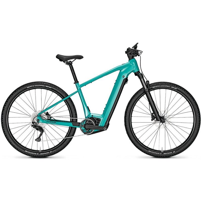 Caractéristiques techniques : Cadre / fourche / amortisseur : - Cadre : aluminium 7005 hydroformed, 3D forging, 148x12 mm thru axle, post mount 180 mm - Fourche : SR Suntour XCR 34 LO Coil, 15x110 mm - Débattement : 100 mmMotorisation : - Moteur : Bosch Performance CX Gen4, couple 85 Nm, 250 W - Batterie : Bosch 625 Wh / chargeur 17.4 Ah - Ecran : Bosch LED Remote + Intuvia 100Groupe : - Manettes de vitesses : Shimano Deore M4100, 10 vitesses - Dérailleur arrière : Shimano Deore M4120, 10 vitesses - Cassette : Shimano Deore M4100, 10 vitesses, 11-42 dents - Pédalier : FSA CK-320, aluminium - Plateau : 36 dents - Chaîne : KMC X10, 10 vitessesFreins : - Freins à disque hydraulique : Shimano MT200, 2-pistonPériphériques : - Potence : FOCUS C.I.S . intégrée aluminium, longueur 60 mm, 30°, diamètre 35 mm - Cintre : Aluminium, largeur 760 mm, flatbar, backsweep: 9°, diamètre 35,0 mm - Tige de selle : Aluminium, diamètre 31.6 mm - Selle : Selle Royal HRN 4007 - Pédales : sansRoues & pneus : - Roues : RODI TRYP25, 25-622 / moyeux Shimano Alivio MT400 - Pneus avant & arrière : Schwalbe Smart Sam 2.25, 57-622,Schwalbe Smart Sam, 57-584 - Dimensions pneus : 27.5x2.25Informations générales : - Poids : 23.5 kg - Coloris : bleu turquoise - Tailles : XS (27.5 pouces), S (29 pouces), M (29 pouces), L (29 pouces), XL (29 pouces) - Marque : Focus