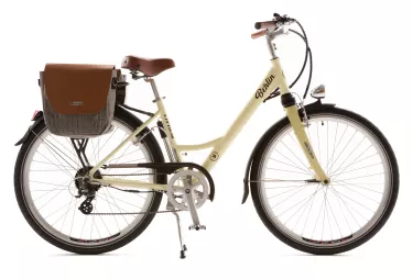velo de tourisme classique neerlandais portee jusqu a 70 kmvitesse de pedalage assistee jusqu a 25 km hpoids de 25 kg avec batterie moteur brushless 250w littium ip63 capteur pas a 12 aimants integre dans le pedalier affichage multifonctionnel lcdzoom vbrakeselements amovibles de la batterie au lithium samsung 36v 10 4aautonomie jusqu a 70 kmschargeur 2amoteur sans balais 250w littiumroues de 28 avec pneus kenda 700x45cselle en similicuir de haute qualiteled avant et arriereshimano altus 7 vitesses 14 34 t25 kgshifter incorpore dans les leviers de freininclus chargeur 2aoutilsaccelerateur pour usage prive uniquementpedales2 sacoches arrieresac avec manuel porte cles certificat de declaration de conformite2 cles de securite pour les piles