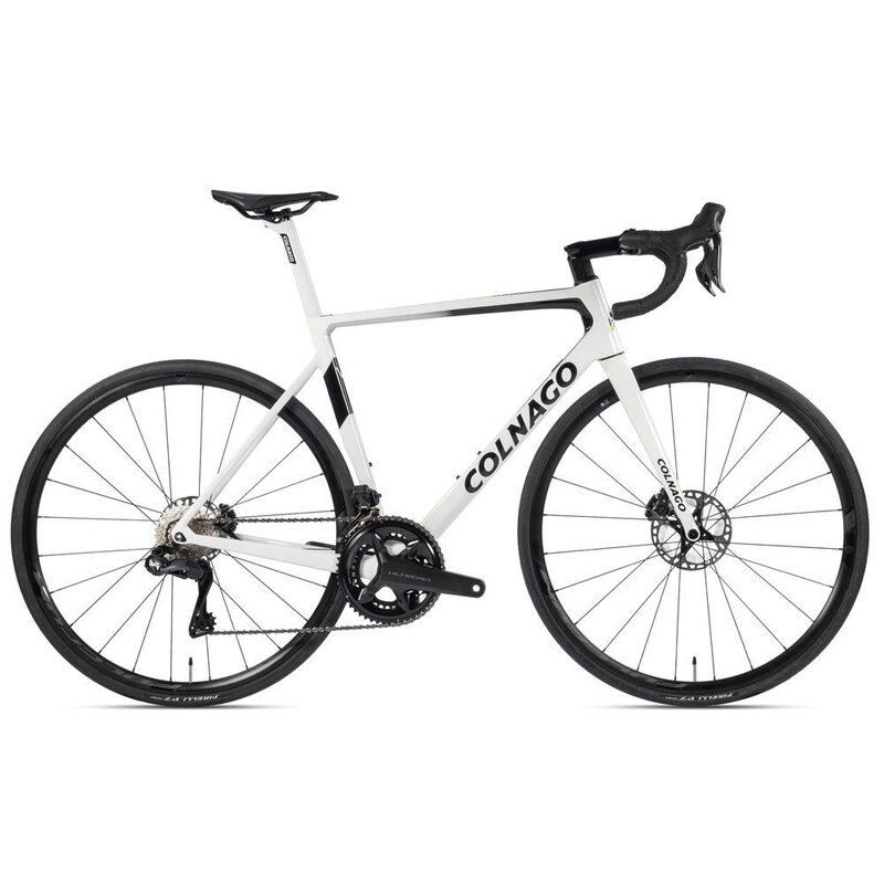 Caractéristiques techniques : Cadre : - Cadre : Colnago V3 Disc Carbon Monocoque (790 grammes) - Fourche : Colnago V3 Disc CarbonTransmission : - Poignées : Shimano Ultegra R8170 Di2 12v - Dérailleur arrière : Shimano Ultegra R8150 Di2 12v - Dérailleur avant : Shimano Ultegra R8150 Di2 2x12v - Cassette : Shimano Ultegra R8100 12v - Pédalier : Shimano Ultegra R8100 Hollowtech II 2x12vFreinage : - Freins et disques : Shimano Ultegra R8170 disque hydrauliqueComposants : - Cintre : Colnago carbone R41 - Selle : PrologoRoues : - Roues : Fulcrum Racing 600 DB - Pneus : Pirelli Pzero RaceInformations générales : - Coloris : MKWK / White Black - Tailles : 42, 45, 48, 50, 52, 54, 56, 58 Géométrie : (mm) 42 45 48 50 52 54 56 58 A 514 520 526 537 549 565 579 593 B 368 375 380 382 384 390 400 408 C 113 114 117 132 151 168 175 193 D 420 450 480 500 520 540 560 580 E 501 514 526 537 549 565 579 593