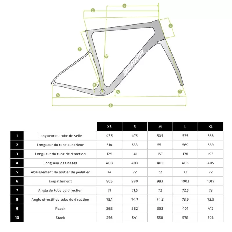 Caractéristiques techniques : Cadre : - Cadre : Specialissima PRO carbon HM with Bianchi CV System, only electronic groupsets, fully internal cable routing, headset Acros ICR, direct mount brakes, BB-PressFit 86,5x41 sizes 47-50-53-55-57-59cm - Fourche : Specialissima PRO full Carbon HM with CV, aero, integrated head, disc, 1.5" head, 12x100mm thru axle Transmission : - Pédalier : Shimano Ultegra 12sp, FC-R8100, 12 - speed, 52x36T, Crank Length: 170mm-47/54cm, 172.5mm-55/59cm - Cassette : Shimano Ultegra, CS-R8100,Ultegra 12sp, 11-12-13-14-15-16-17-19-21-24-27-30T - Chaine : Shimano Ultegra 12 sp CN-M8100 - Poignées : Shimano Ultegra Di2 hydraulic disc brake for road, ST-R8170, BR-R8170, for 160mm rotor, resin pad - Dérailleur avant : Shimano, FD-R8150, Ultegra Di2, brazed-on type, down swing, top gear 50-54T, for rear 12-speed - Dérailleur arrière : Shimano Ultegra Di2 12sp, RD-R8150 Freinage : - Freins : Shimano BR-R8170 Hydraulic disc brake included in the shifter - Disques : Shimano RT-CL800 center lock type w/Ice Tech, 160mm front rear Composants : - Cintre / Potence : Reparto Corse integrated handlebar, material Carbon, for Acros ICR system drop 125mm, reach 80mm Ext: 90/380 ; 100/400 ; 110/400; 120/420 - Selle : Velomann Mitora 139 Hyper Carbon, nylon carbon shell, carbon rails, Lenght: 250mm, Width: 139mm, Weight: 180g ± 2 - Tige de selle : Specialissima Full Carbon Aero special dimension seatpost, 20mm offset, length: 280mm-47cm, 300mm-50/53cm, 350mm-55/59cm Roues : - Roues : Velomann Palladium, 33mm profile, 700x21c, 24h, XDR body, Spoke pattern 2 to 1, tubeless-ready, weight 1460 gr (±5%), Sealed cartridge bearings - Pneus : Pirelli P ZERO Race , 26-622, 127TPI Informations générales : - Coloris : MW - Carbon/Ckmetallic/CK16 - Tailles : 47, 50, 53, 55, 57, 59 Géométrie :  (mm) 47 50 53 55 57 59 A 486 494 520 536 552 571 B 379 387 386 391 397 400 C 100 105 120 135 150 170 D 420 450 480 500 520 540 E 514 524 535 550 560 575