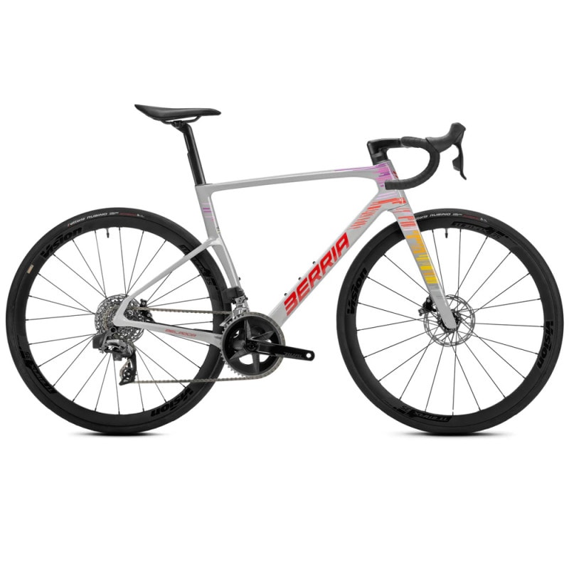 Caractéristiques techniques : Cadre : - Cadre : Filante 0 SLR Carbon Monocoque HUS MOD + Crystal Liquid Polymer (870 g) - Fourche : Filante 0 SLR Carbon Monocoque HUS MOD + Crystal Liquid Polymer (360 g) - Axes : 12x100 mm/12x142 mmTransmission : - Poignées : Shimano Ultegra Di2 12v - Dérailleur avant : Shimano Ultegra Di2 12v - Dérailleur arrière : Shimano Ultegra Di2 12v - Pédalier : Shimano Ultegra 12v - Boitier de pédalier : Shimano Ultegra Press Fit SM-BB72 - Cassette : Shimano Ultegra 12v - Chaîne : Shimano Ultegra 12vFreinage : - Freins : Shimano Ultegra - Disques : Shimano Ultegra Center Lock 160/140 mmComposants : - Cintre : Filante Bar Integrated Carbon - Jeu de direction : FSA Custom Bearings MR137 - Selle : Selle Italia Flite Boost Covered - Tige de selle : Filante Custom Made - 15 mm/0 mm - Ruban de cintre : Prologo One TouchRoues : - Roues : Miche Syntium Alu - Pneus : Vittoria Corsa 700x28CInformations générales : - Coloris : Velvet Red Glossy - Tailles : XS, S, M, L, XL, XXL - Géométrie des tailles en galerie photos - Poids : 7,25 kg - Marque : Wilier Triestina Géométrie :  (mm) XS S M L XL XXL A 505 521 538 555 571 587 B 380 384 388 391 395 399 C 104 119 135 154 166 181 D 450 480 500 520 540 560 E 515 530 543 556 570 583