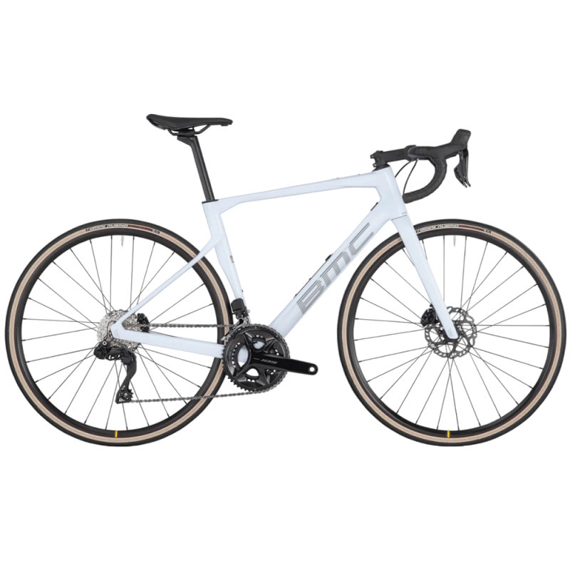 Caractéristiques techniques : Cadre : - Cadre : Roadmachine Carbon with Tuned Compliance Concept Endurance / Integrated Downtube Storage / Fender Mounts / Compatible with Integrated Bottle Cages and Rear Light / Stealth Dropout Design / PF86 Bottom Bracket / 12x142mm Thru Axle - Fourche : Roadmachine Carbon with Tuned Compliance Concept Endurance / Fender Mounts / Stealth Dropout Design / Flat Mount dis / 12x100mm Thru Axle Groupe : - Dérailleur Avant : SHIMANO 105 Di2 - Dérailleur Arrière : SHIMANO 105 Di2 12v - Manettes de vitesses : SHIMANO 105 Di2 12v - Pédalier : SHIMANO 105 R7100 50-34T - Chaîne : SHIMANO 105 12v - Cassette : SHIMANO 105 12v 11-34T Périphériques : - Cintre : BMC RAB 03, forme Ergo Top - Potence : Potence RSM01 - Tige de selle : Roadmachine carbon en forme de D / Décalage de 15mm - Selle : Fizik Taiga ou Selle Royal SRX Freinage : - Leviers/étriers de freins : SHIMANO 105 - Disques : SHIMANO SM-RT70 160/140mm Roues : - Jantes : Mavic Open Disc - Pneus : Vittoria Rubino IV G2.0 30mm - Tubetype : Chambre à air UNIQUEMENT Informations complémentaires : - Marque : BMC - Coloris : Cool White - Grey - Tailles : 47-51-54-56-58-61 - Poids Limite : 110kg - Pneus largeur max : 40mm