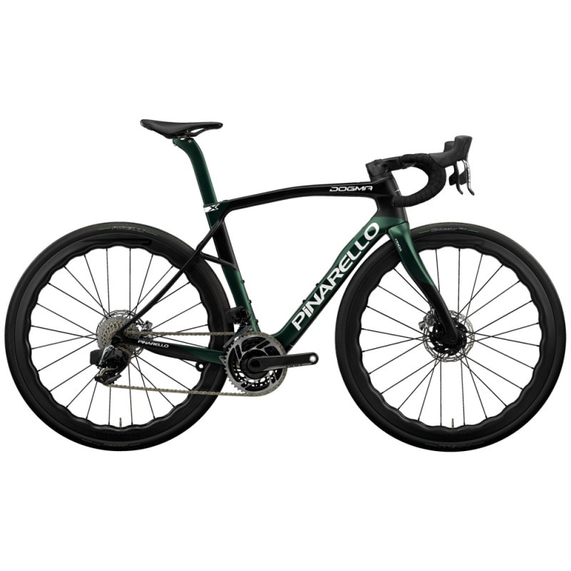 Caractéristiques techniques : Cadre : - Cadre : TorayCa T1100 1K Dream Carbon with Nanoalloy technology, internal cable routing, Italian BB, UCI approved - Fourche : Carbon Transmission : - Pédalier : Shimano Dura Ace Di2 RD-R9200 12s - Cassette : Shimano Dura Ace CS-R9200 12S - Chaine : Shimano Dura Ace CN-HG 12S - Poignées : Shimano Dura Ace Di2 RD-R9200 12s - Dérailleur avant : Shimano Dura Ace Di2 FD-9200 12S - Dérailleur arrière : Shimano Dura Ace Di2 RD-R9200 12s Freinage : - Freins : Dura Ace BR-R9200, 2 pistons caliper, 160mm rotor avant / 140mm rotor arrière Composants : - Cintre : MOST Talon Ultra Light - Potence : MOST - Selle : Most Lynx Ultrafast Superflow L Carbon Large 145mm - Tige de selle : Pinarello Aero seatpost with 3D printed titanium top seatclamp and bolts Roues : - Roues : DT Swiss ERC1400 - Pneus : Pirelli P ZERO Race TLR 35-622 Informations générales : - Coloris : E203 Xolar Green - Tailles : 43, 46.5, 50, 51.5, 53, 55, 56, 57.5, 59.5, 62 La photo est à titre indicatif, ce vélo est bien monté avec un groupe Shimano Dura Ace Di2 et des roues DT Swiss ERC1400 . Géométrie : (mm) 43 46.5 50 51.5 53 54 55 56 57.5 59.5 62 A 524.2 535.5 542.1 548.6 559 568.4 578.9 588.4 601.7 632 670.3 B 349.3 358.1 365.4 371.7 379.4 381.2 383 384.6 390.8 395.3 403.8 C 107 119 124 129 138 146 157 165 178 214 254 D 425 450 465 485 500 510 520 525 540 560 600 E 505 515 525 535 545 552 557 565 575 595 620