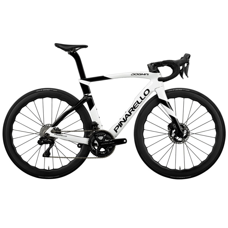 Caractéristiques techniques : Cadre : - Cadre : TorayCa T1100 1K Dream Carbon with Nanoalloy technology, TiCR cable routing, Italian BB, UCI approved - Fourche : F Onda Fork with ForkFlap, 1.5' upper and lower steerer, Ultra Light Headset bearings Transmission : - Pédalier : Sram Red ETAP AXS 12v - Cassette : Sram Red XG-1290 - Chaine : Sram Red 12v - Poignées : Sram Red 12v - Dérailleur avant : Sram Red ETAP AXS 12v - Dérailleur arrière : Sram Red ETAP AXS 12v Freinage : - Freins : Sram Red 2 pistons caliper - Disques : 160mm à l’avant et l’arrière Composants : - Cintre : Most Talon Ultra Light - Potence : Most - Selle : Most Lynx Ultrafast Superflow L Carbon Large 145mm - Tige de selle : Pinarello Aero seatpost with 3D printed titanium top seatclamp and bolts Roues : - Roues : Princeton Peak 4550 - Pneus : Pirelli P Zero Race 26mm - Black, 127 tpi aramid breaker . Max tyre size 28mm Informations générales : - Coloris : E135 Speedster White - Tailles : 43, 46.5, 50, 51.5, 53, 54, 55, 56, 57.5, 59.5, 62 - Marque : Pinarello Géométrie : (mm) 43 46.5 50 51.5 53 54 55 56 57.5 59.5 62 A 502.4 517.6 525.4 532.3 542.6 551.2 561.6 570.2 584.8 613.3 651.7 B 351.4 364.8 372.1 378 383.3 385 388.8 390.7 396.7 393.3 410.1 C 97 104 109 114 123 131 142 149.5 163 199 239