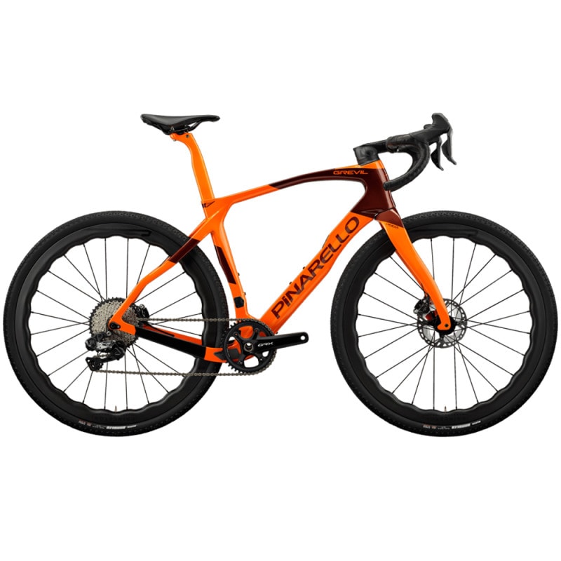 CARACTÉRISTIQUES TECHNIQUES : Cadre : - Cadre : TorayCa T700 UD, TiCR™ cable routing, Italian BB - Fourche : Grevil Onda fork with forkflap™, tapered head tube - Axes : 12x142/12x100mmGroupe : - Manettes de vitesses : Shimano GRX810 11v - Dérailleur arrière : Shimano GRX810 11v - Cassette : Shimano Ultegra 11-34dts - Pédalier : Shimano GRX810 42dts - Chaîne : Shimano HG-701 11VFreins : - Freins : Shimano GRX disques hydrauliques - Disque : Shimano GRX 160mmPériphériques : - Cintre : Jaguar GR Di2 - Potence : Tiger Aero Alu TiCR - Ruban de cintre : MOST Ultragrip Evo 3mm - Black - Tige de selle : Pinarello Aero Seatpost - Selle : Most Lynx Aircross FEC Alloy Large 145mmRoues & pneus : - Roues : Fulcrum Rapid Red 500 - Pneus : Maxxis Rambler 40cInformations générales : - Coloris : Radiant Aura - Tailles : 47/50/53/55/57.5/60 - Géométrie en galerie photos - Poids : 8.85kg - Marque : Pinarello(Visuel à titre indicatif, ce vélo est équipé d’une transmission Shimano GRX810) Géométrie :  (mm) 47 50 53 55 57.5 60 A 548.4 563.5 578.4 593.5 608.8 628.8 B 360.1 367.8 374.4 382 389.7 398.5 C 120 135 155 165 180 200 D 410 445 475 500 520 550 E 520 535 547 560 577 597