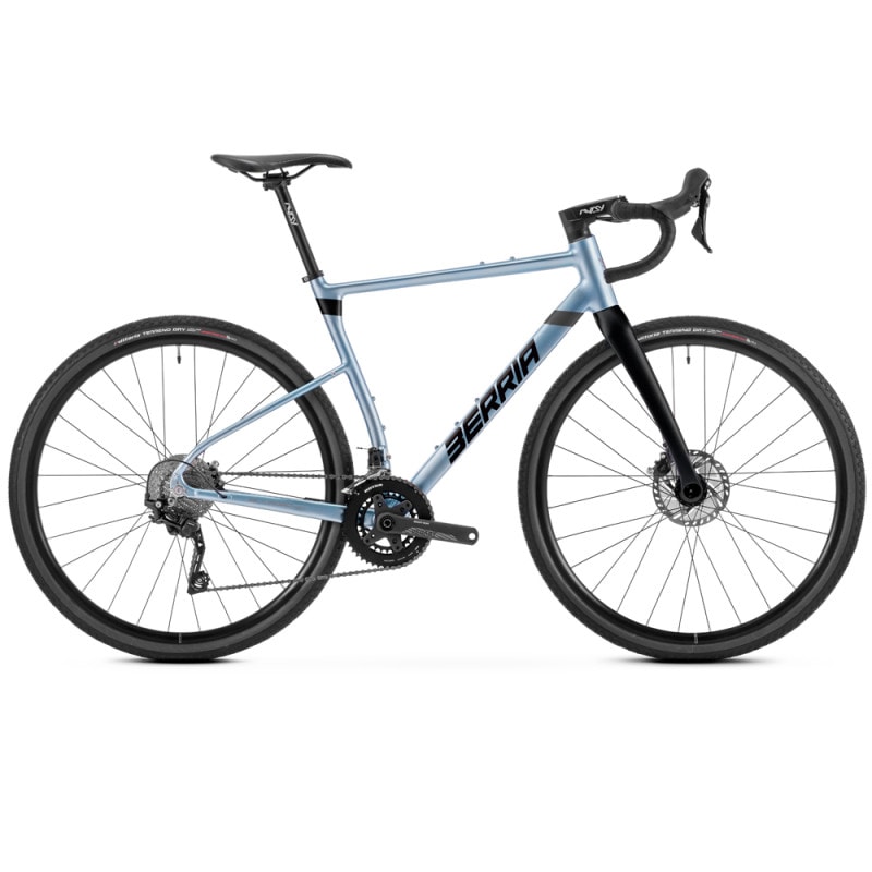 Caractéristiques techniques : Cadre : - Cadre : Belador Allroad HPR, Gravel type 1-2 Geometry BGC, filed and polished Aluminum 3BS 6061 Hydroforming, Full internal cable system ICS2, Headset semi integrated OH2S 1-1/2", Flat Mount System brake, 700x42 maximun tyre, Thru axle 12x142mm / poids : 1750g - Fourche : FORK BELADOR ALLROAD EVO, full carbon , internal cable system ICS2, 1-1/8" - 1-1/2" Tappered , Flat Mount System brake max . 160mm disc , 700x44 maximun tyre, Flip-chip adust 45-51mm rake, 405mm axle-crown, Thru axle 12x100mm / poids : 500g Transmission : - Pédalier : Rotor Vegast TDS OCP, 46x30T 170-172,5-175mm - Cassette : Shimano CS-HG50 11-36 10V - Chaine : Shimano CN-HG54 - Poignées : Shimano GRX ST-RX400 Disc 20 Speed - Dérailleur avant : Shimano GRX FD-RX400 - Dérailleur arrière : Shimano GRX ST-RX400 Disc 20 Speed Freinage : - Freins : SHIMANO BR-RX400 Hyd Disc SM-RT70 CL rotor - Disques : 160mm à l’avant et à l’arrière Composants : - Cintre : Avanforce 3 Gravel, Alloy 6061, /400, 420, 440mm - Selle : Selle Royal 2058, Steel rails, width 285mm, width 145mm - Tige de selle : Avanforce AF3, Aluminum 6061, 0 offset, 27,2 x 350mm Roues : - Roues : Mavic Allroad, Aluminum S6000 rim, height 22mm, internal width 23 mm, max . weight 120kg / poids : 1890g - Pneus : Vittoria Terreno Dry 40, Fold full Informations générales : - Poids : 11.4 kilos (Poids vérifié en taille L) - Coloris : Blue Mist - Tailles : XS, S, M, L, XL Géométrie : (mm) XS S M L XL A 535.9 551.9 566.9 585.1 604.2 B 376.4 381.7 387.1 396.1 410.3 C 100 115 131 148 166 D 460 484 508 532 556 E 525 545.2 555 569.4 589.3