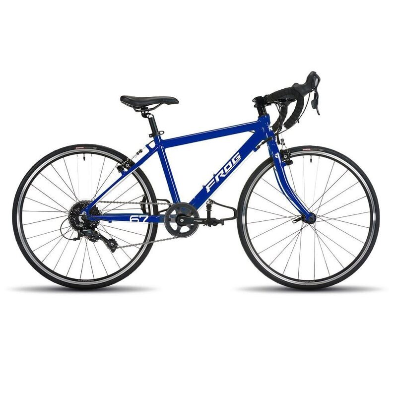 Caractéristiques : - Tranche d'âge : 8-12 ans - Entrejambe conseillée : 67 cm minimum - Diamètre des roues : 24" - Cadre : 6061 T6 heat treated Aluminium alloy, seat tube 37cm (14.5") - Fourche : 6061 T6 heat treated Aluminium alloy - Moyeu avant : Quando, aluminium, sealed hub, QR, 24 hole - Moyeu arrière : Quando, aluminium, sealed hub, QR, 28 hole, Shimano type free hub body, 9-speed - Cassette : 9-speed, 11-32T - Dérailleur arrière : Shimano Sora, RD-R3000, 9 speed - Jante : Aluminium 24", double wall, machined braking surface - Tige de selle : Aluminium, QR - Jeu de direction : Neco, 1"1/8 semi-integrated threadless, front brake hanger, Frog Bikes top cap - Potence : Aluminium, 1"1/8, 38mm, 4 bolt clamp - Grip : Black bar tape - Manette dérailleur : Microshift SBR492S, 9-speed, Jnr rapidfire plus, aluminium canti/roller-brake - Freins : Tektro Oryx, 992AG, alloy cantilever - Pneus : Kenda K-191, 24"x1" Road, (ETRTO/ISO 23-540) . Kenda, K1153 24"x1"3/8", Cyclo-Cross, (ETRTO/ISO 37-540) - Pédalier : Frog Bikes Patented, 127mm, Aluminium straight arm cranks, 32T chainring, black - Thun Shorty-ML-SL; square taper, 68/108/107.5 - Pédales : Wellgo R090, resin platform, single sided, toe clips (small), reflectors, 9/16" - Chaine : KMC, 9-speed - Cintre : 6061 aluminium, custom drop bar, 340mm - Levier de freins : Integrated to gear shifters & Tektro RL570 auxillary levers - Selle : Frog Bikes, child specific slimline saddle (medium), steel rails - Normes : ISO 4210 and CPSC 1512 (CFR 1512) - Couleur : bleu - Poids : 8.8 kg - Marque : Frog Bikes