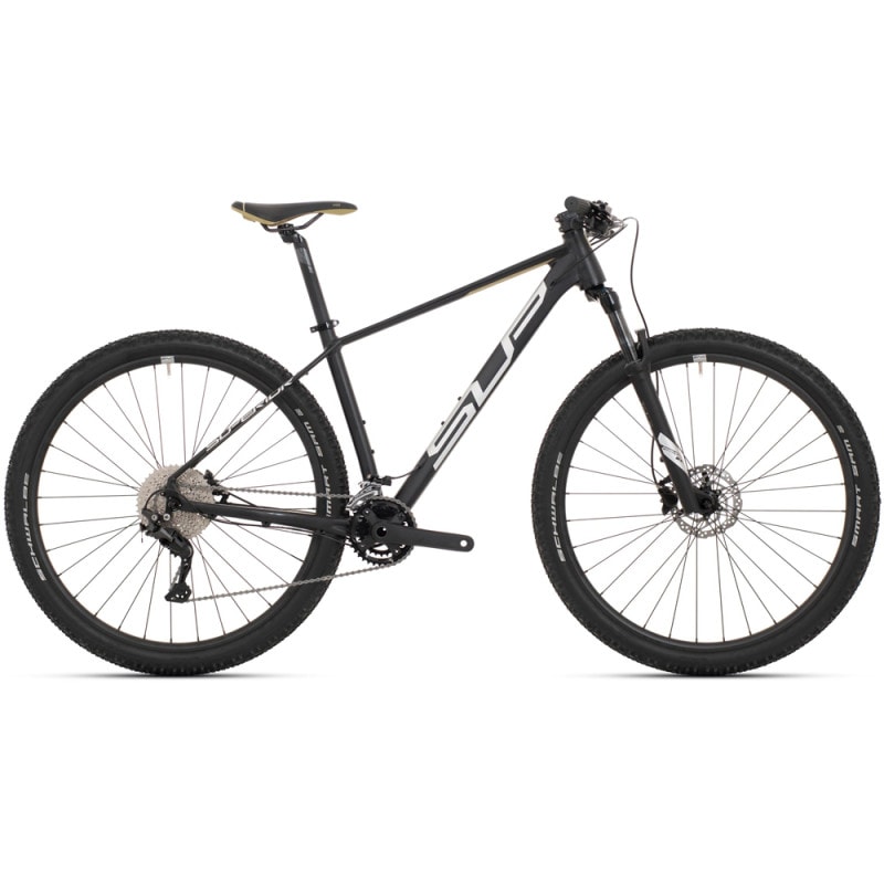 Caractéristiques techniques : Cadre / fourche / amortisseur : - Cadre : Alu 6061 T6 Double Butted, Smooth Welding, Sport Geometry, Conical Head Tube, BB BSA 73 mm, IDK dropout, Smoot Welding, Inner cable routing - Fourche : Suntour RST Aerial, 1-1/8" - Débattement : 100 mm Groupe : - Manettes de vitesse droite : Shimano Deore SL-M4100-R RapidFire Plus, 10 vitesses - Manette de vitesse gauche : Shimano Deore SL-M5100-L RapidFire Plus, 2 vitesses - Dérailleur arrière : Shimano Deore RD-M4120 Shadow, 10 vitesses - Dérailleur avant : Shimano FD-M4100-M, Side Swing, Front-Pull, double plateaux - Cassette : Shimano CS-M4100-10, 11-42 dents - Pédalier : ONE1 TAF38-239SS - Plateau : 36 dents / 26 dents - Chaîne : KMC X10 Freins : - Freins à disque hydraulique : Shimano MT200, disque 160 mm avant/arrière Périphériques : - Potence : ONE1 Sport MAS-D61248 Alloy, 31.8mm, -8° - Cintre : ONE1 Alloy, MTB AL-312BT, 9° backsweep, 12mm rise, diamètre 31.8mm - Largeur cintre : 740 mm - Poignées : ONE1 VLG-1661D2N, Lock-On (poignées ergonomiques) - Tige de selle : ONE1 Sport Alloy, SP C207, diamètre 30.9mm - Selle : Selle Royal Vivo HRN - Pédales : Marwi SP-610 Roues & pneus : - Roues : Stars J25DH, 32H, moyeu Shimano HB-QC300, rayons Sapim Galvanized Black - Pneus avant et arrière : Schwalbe Smart Sam KevlarGuard - Dimensions pneus : 29x2.10 à l’avant et l’arrière Informations générales : - Poids : 14.7 Kg en taille L - Coloris : Noir détails gris (Black/Silver/Olive) - Tailles : 16 (S), 18 (M), 20 (L), 22 (XL) - Marque : Superior Géométrie : (mm) S M L XL A 620 639 639 657 B 372 387 407 421 C 100 120 120 140 D 70 70 70 70 E 406 457 508 559 F 570 590 610 630