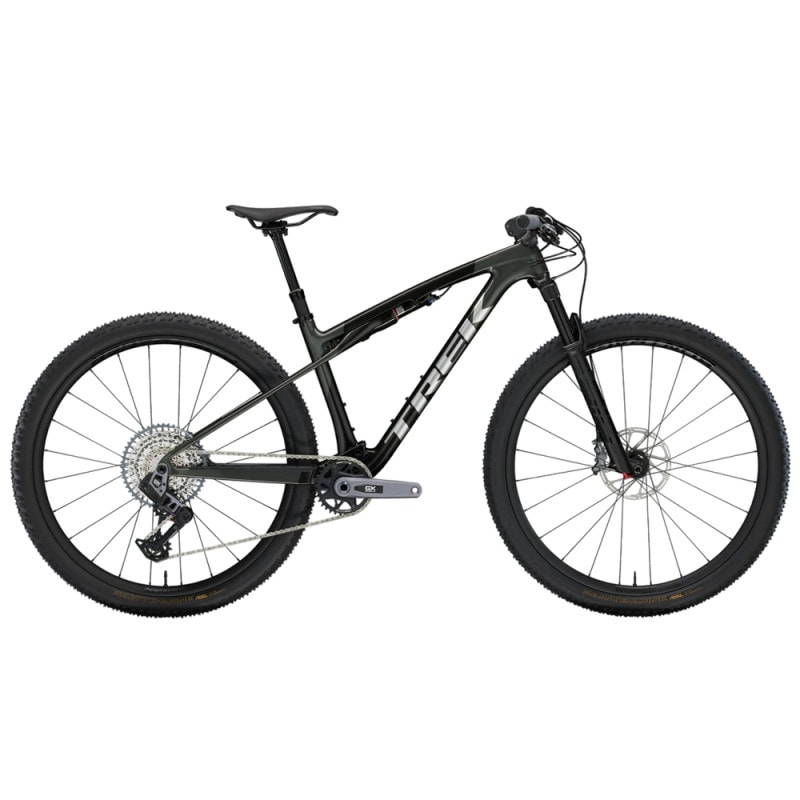 Caractéristiques techniques : Cadre / fourche / amortisseurs : - Cadre : SLR carbone OCLV Mountain, IsoStrut, patte de dérailleur universelle, débattement 80 mm - Fourche : RockShox SID, ressort DebonAir, amortisseur Rush RL, blocage au guidon, pivot conique, déport de 44 mm, Boost110, Maxle Stealth 15 mm, débattement de 110 mm - Amortisseur : Trek IsoStrut, RockShox SIDLuxe, amortisseur à deux positions - Commande suspension : RockShox TwistLoc - Débattement maximum de fourche compatible : 120 mm Roues : - Roues : Bontrager Kovee Elite 30, carbone OCLV Mountain, tubeless-ready, 6 trous, Boost (15x110 mm et 12x148 mm) - Pneus : Bontrager RSL XR 29x2.40, Tubeless Ready - Taille max . pneus : 29x2.40 Groupe : - Leviers de vitesses : SRAM AXS POD - Dérailleur arrière : SRAM GX Eagle AXS, Type T - Pédalier : SRAM GX Eagle, type T, DUB, 34 dts, ligne de chaîne de 55 mm, - Longueur de manivelles : 170 mm (S/M), 175 mm (M-L/L/XL/XXL) - Boitier de pédalier : SRAM DUB, 92 mm, PressFit - Cassette : SRAM Eagle XS-1275, Type T, 10-52, 12 vitesses - Chaine : SRAM GX Eagle, type T, 12 vitesses - Taille max . plateau : 38 dents Périphériques : - Selle : Bontrager Verse Elite, rails en austénite, largeur de 145 mm - Tige de selle : Bontrager Line Dropper, 100 mm de débattement, MaxFlow, acheminement interne, 31,6 mm, 310 mm (S), 410 mm (M, ML, L), 450 mm (XL) - Cintre/potence : Potence/cintre intégré Bontrager RSL, carbone OCLV, élévation cintre 0 mm, largeur de 750 mm, inclinaison de potence -13 - Longueur de potence : -13°, 70 mm (S/M/M-L), -13°, 80 mm (L), -13°, 90 mm (XL) Freinage : - Freins : SRAM Level Bronze hydrauliques, disque 4 pistons - Disques : SRAM CenterLine, 6 trous, bord arrondi, 180 mm (avant) / 160 mm (arrière) Informations générales : - Poids : 11.28 kg (M) - Poids max . charge : 136 kg - Taille : S /M / M-L / L / XL / XXL - Guide des tailles en galerie photos - Coloris : Deep Smoke Géométrie : (mm) S M ML L XL A 590 590 590 599 622 B 410 435 450 465 500 C 90 90 90 100 125 D 67.5 67.5 67.5 67.5 67.5 E 395 420 440 460 525 F 571 592 605 622 663