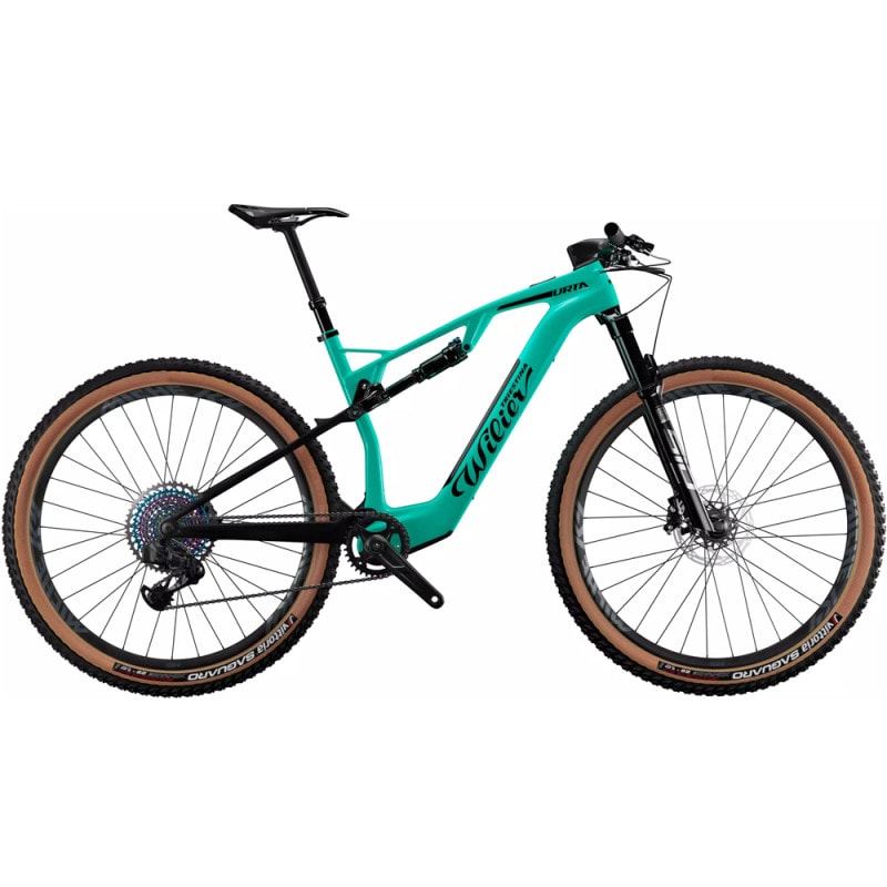 Caractéristiques techniques : Cadre / fourche / amortisseur : - Cadre : Urta Hybrid Carbon Hus-MOD - Fourche : Rock Shox SID, 120 mm de débattement, Boost - Amortisseur : Rock Shox Deluxe Select 210x55 Motorisation : - Moteur : Fazua Ride 60, 450 W, couple 60 Nm, assistance jusqu’à 25 Km/h - Batterie : Fazua 430 Wh (possibilité d’ajouter une extension de 210 Wh sur le porte bidon) - Contrôleur : Fazua Led Hub, ANT+ & Bluetooth, USB-C Groupe : - Manettes de vitesses : Shimano SLX M7100 - Dérailleur arrière : Shimano XT RD-M8100-SGS - Cassette : Shimano SLX CS-M7100-12 10-51T - Pédalier : Miche aluminium 32T - Chaîne : Shimano SLX CN-M7100 118 LINK - Freins à disques hydrauliques : Shimano XT BR-M8100 - Disque : Shimano RT-MT800 180mm / 160 mm Périphériques : - Potence : Ritchey WCS Alu C220 - Cintre : Ritchey WCS Alu - Tige de selle télescopique : Drop KS RAGEi - Selle : Prologo Proxim Roues & pneus : - Roues : Miche 966 Alu - Pneus : Pirelli Scorpion XC 29x2.40” Informations générales : - Poids : 16 kg - Coloris : Aquamarine - Tailles : S, M, L, XL - Marque : Wilier PS : la photo n'est pas forcément celle correspondant au VTT . Géométrie : (mm) S M L XL A 593 597 608 623 B 406 432 458 485 C 93 94 105 122 D 66 66.7 66.7 66.7 E 410 440 480 520 F 576 603 632 664