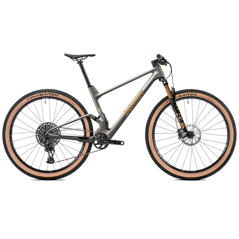 Caractéristiques techniques : Cadre / fourche / amortisseur : - Cadre : Mako, Full carbon fiber HM2X | XCO Geometry BGC, débattement 113mm with integrated IN-LINK suspension, Full carbon HM2X, moncoque, resin HEXCEL HexPly, bearings full ball ISB VMAX, BB92 botton bracket, full internal cable system ICS2, Integrated headset OH2S 1-1/2", Post Mounted brake PMS, 29"x2.40 maximun tyre, BOOST Thru axle 148x12, UDH standar, poids 1795g (without hardware) - Fourche : FOX 34 SC Factory, Kashima Coat, FIT4 3P Lockout remote 3 Position, Float Evol Air, Reb . Adj., 15x110mm Kabolt axle, 44mm offset, Tapered steerer, 1623g, débattement 110mm - Amortisseur : FOX PERFORMANCE FLOAT DPS BERRIA MAKO 4 WC XCO Tuning, EVOL SV 3 POS adjustment, Trunion 165X45mm, weight 268g, débattement 105mm Groupe : - Manettes de vitesses : SRAM GX Eagle Trigger Lunar 12 vitesses - Dérailleur arrière : SRAM GX Eagle, 12 vitesses - Cassette : SRAM XG1275 Eagle, 10-52T - Pédalier : SRAM X1 DUB Eagle Boost 34T - Chaîne : SRAM GX Eagle CN-EAGL-GX-A1 - Freins à disques hydrauliques : SRAM LEVEL G2 RSC Disc tool free reach adjust, 4 Pistons - Disques : 200mm (avant) et 180mm (arrière) | 6 trous Périphériques : - Cintre/potence : AGUILA , Integrated handlebar carbon Concept, wide 760mm, Backsweep 7°, Upsweep 5°, Rise 0mm, Stem lenght 60mm/75mm/95mm, weight 330gr - Tige de selle télescopique : Avanforce 0 offset, 31,6 x 400mm - Selle : Fizik Taiga alloy rail Roues & pneus : - Roues : FULCRUM RED ZONE 99, Alloy, internal width 23 mm, max . weight 120kg - Pneus : Vittoria Barzo 2.25"X 29", Tubeless Ready, GRAPHENE 2.0 | 120 TPI Informations générales : - Poids : 11.95 kg - Coloris : Keronite (gris) - Tailles : S (153-170 cm), M (168-185 cm), L (183-200 cm) - Limite de poids : 110 kg (poids du cycliste + poids du vélo) - Marque : BERRIA Géométrie : (mm) S M L A 590 602 614 B 435 458 485 C 85 95 105 D 67 67.5 68 E 400 445 490 F 580 608 640
