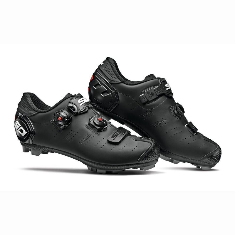 Caractéristiques techniques - Semelles en carbone MTB SRS Carbon Composite - Crampons amovibles et remplaçables - Tige Microfibra Techpro déperlante et made in Italie - Talon renforcé et ajustable - Fermeture à boucles Sidi Techno-3 System et 1 sangle à velcro - 4 parties amovibles sous la semelles - Coloris noir mat - Version large - Marque Sidi
