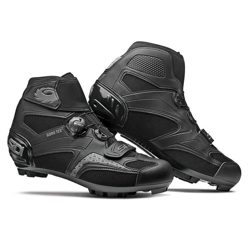 Caractéristiques techniques : - Système Tecno-3 et velcro - Talonnette remplaçable - Chaussant microfibre Microtech et maille - Semelle Carbone Millenium 5 - Membrane Gore-Tex, respirante et hydrofuge - Semelle intérieure London - Coloris : noir - Pointures : 40 à 48 - Marque : Sidi