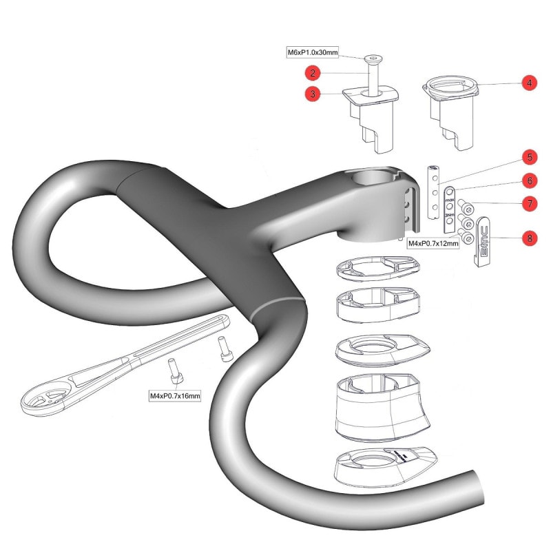 Caractéristiques techniques Kit serrage cockpit BMC ICS Carbon Version Aero Coloris au choix : blanc, noir ou rouge Compris dans le kit : 1x boulon d'expansion, 1x topcap intégré, 1x topcap ouvert, 1x écrou, 1x platine, 3x boulons de serrage, 1x capot