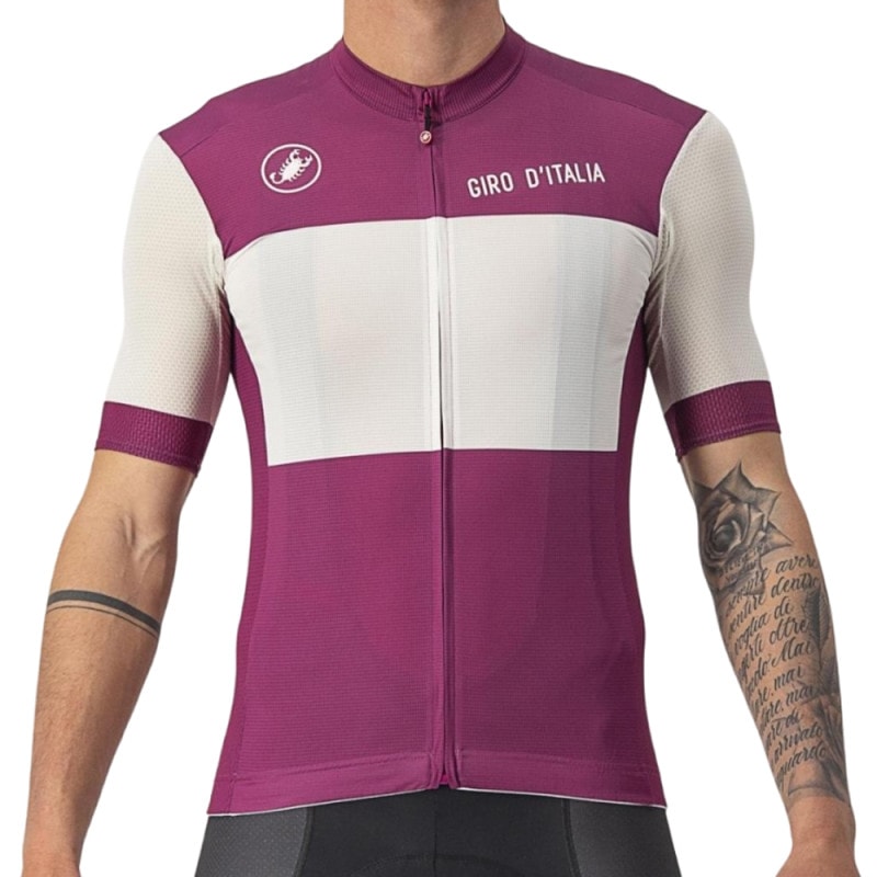 Caractéristiques techniques : - Coloris : Giro Rosa - Tailles : S au XXL - Poids : 183 grammes - Plage de températures : 16-35 degrés - Coupe : Regular - Tissu jacquard tricoté - Panneaux latéraux anatomiques - Fermeture éclair YKK Vislon pleine longueur - Élastique en silicone à la taille - 3 poches à l’arrière Guide des tailles Castelli