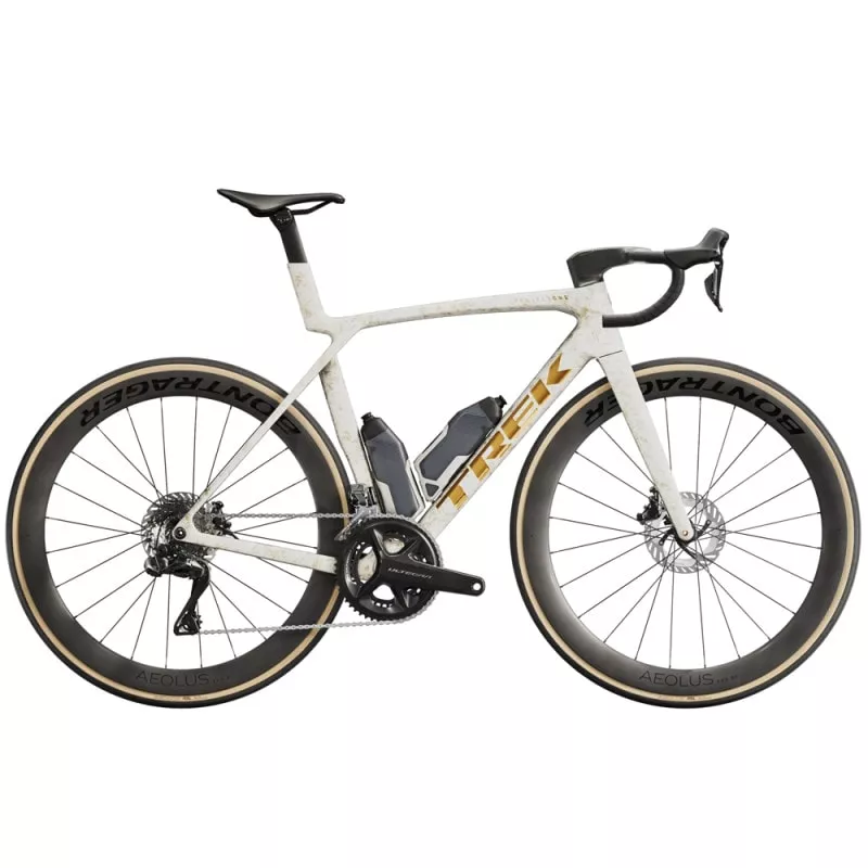 Caractéristiques techniques : Cadre : - Cadre : OCLV Carbon série 900, forme de tube Full System Foil, tube de selle IsoFlow, jeu de direction RCS, acheminement électronique uniquement, garde-chaîne aérodynamique amovible, boitier de pédalier T47, freins à disque à fixation Flat Mount, patte de dérailleur universelle (UDH), axe traversant 142x12 mm - Fourche : Madone Gen 8 full carbon, tapered carbon steerer, internal brake routing, flat mount disc, 12x100mm chamfered thru axle Transmission RED ancienne génération (2023) : - Pédalier : SRAM Red AXS, capteur de puissance, 48/35, axe DUB, longueur manivelles 165 mm (XS, S), 170 mm (M), 172.5 mm (ML, L), 175 mm (XL) - Boitier de pédalier : SRAM DUB, T47 fileté, roulements internes - Cassette : SRAM XG-1290, 10-33, 12 v - Chaine : SRAM Red D1, 12 vitesses - Poignées : SRAM Red eTap AXS, 12 vitesses - Dérailleur avant : SRAM Red AXS - Dérailleur arrière : SRAM Red AXS, pignon 36 dts max . Freinage : - Freins à disques : SRAM CenterLine X, centerlock, bord arrondi, 160 mm Composants : - Combo Cintre/Potence : Trek Aero RSL Route, OCLV Carbon, Race Fit, profondeur de 80 mm, hauteur de 124 mm, largeur de 35 cm aux cocottes, largeur de 38 cm dans les creux, longueur de potence de 80 mm (XS), largeur 40 cm - potence 90 mm (S), largeur 42 cm - potence 90 mm (M), largeur 42 cm - potence 100 mm (ML, L), largeur 44 cm - potence 110 mm (XL) - Selle : Bontrager Aeolus P2 Pro, rails en carbone, largeur de 155 mm (XS, S), 145 mm (M, ML, L, XL) Roues : - Roues : Bontrager Aeolus Pro 51, carbone OCLV, Tubeless Ready, axe traversant - Pneus : Pirelli P Zero Race, 120 tpi, compatible tubeless, 700x28 mm Informations générales : - Coloris : Era White - Tailles : XS, S, M, M-L, L, XL