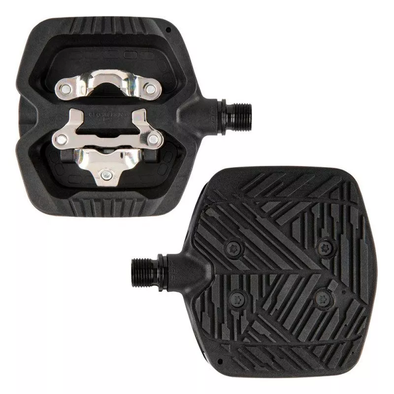 Les pédales combinées sont pratiques pour les cyclistes qui souhaitent pouvoir s'accrocher mais aussi rouler avec des chaussures normales. Ce sont des pédales polyvalentes qui ont un style plate-forme d'un côté et se clipsent de l'autre. Elles sont populaires pour les trajets domicile-travail, mais le fait qu'elles soient clipsées d'un seul côté peut être frustrant pour les utilisateurs qui roulent toujours avec des chaussures clipsées.