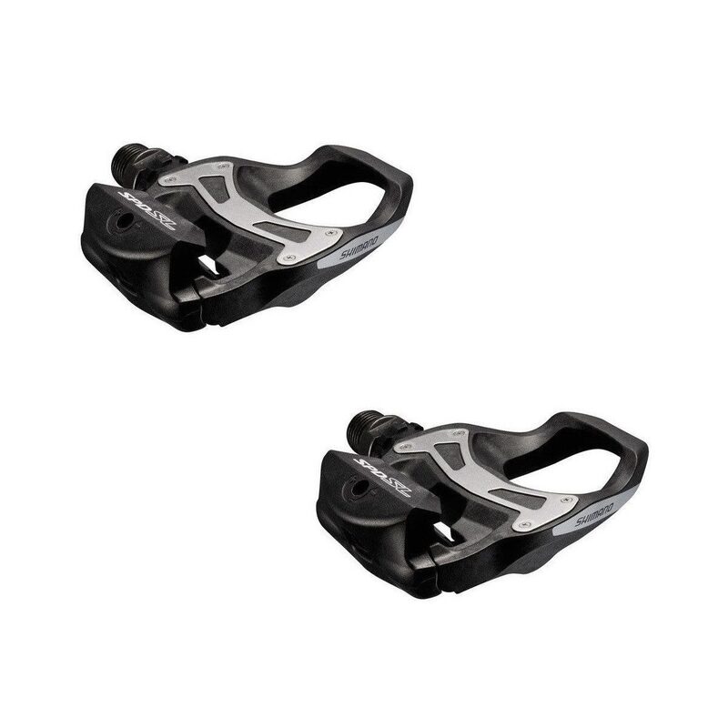 Les pédales sans crampon pour la route utilisent généralement un taquet à trois ou quatre trous, sont souvent à un seul côté et construites avec une plus grande surface pour un meilleur transfert de puissance. La cale la plus large peut être difficile à enfoncer.