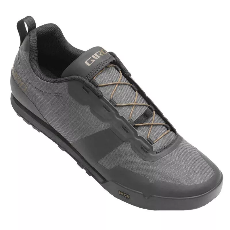 À l'inverse, les chaussures de VTT sans taquet de soutien ont une semelle extérieure régulière. La principale différence avec les chaussures normales est leur plus grande rigidité et une semelle extérieure avec une semelle spéciale dans un composé de caoutchouc, ce qui donne une excellente adhérence. Cela permet à la chaussure de vélo de montagne et aux goupilles des pédales plates de s'accrocher (mordre) l'une dans l'autre, pour une prise en main fiable malgré la connexion "lâche" avec la pédale. Autre avantage : si vous êtes sur le point de tomber, vos pieds atteignent le sol beaucoup plus rapidement qu'avec des chaussures de VTT sans crampons.